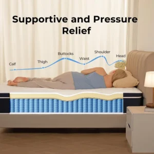 - Pressure Relief Mattress: With an innovative and fiberglass-free construction, this mattress ensures effective pressure point relief, allowing your body to fully relax without any discomfort or pain. Say goodbye to tossing and turning throughout the night and wake up feeling refreshed and rejuvenated